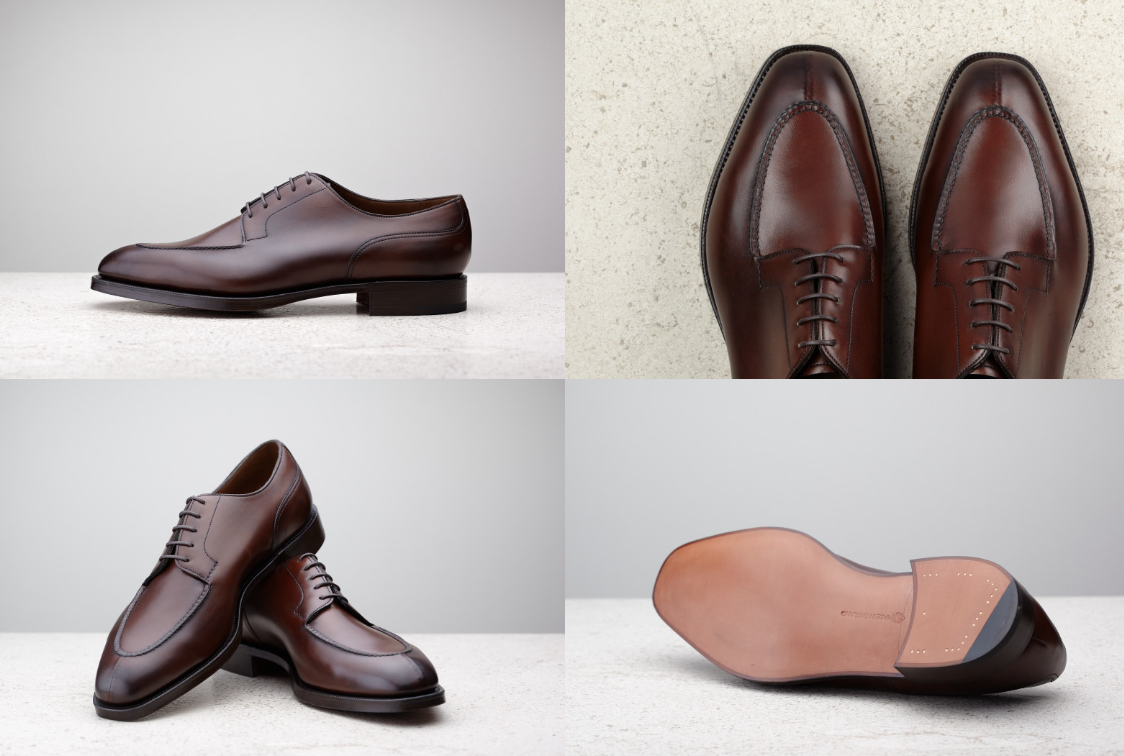 - 더비 (Derby): 옥스포드보다 조금 더 캐주얼한 느낌을 줍니다. 끈 구멍이 본체에 부착된 형태로, 넓은 발에 더 편안합니다. 특히 발등이 높은 사람에게 추천할 수 있는 디자인입니다. 특히 에드워드 그린의 도버는 (Dover) 많은 사람들에게 사람 받는 디자인입니다.