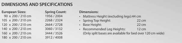| 핵심 기술 | 연속 코일 스프링 시스템 | 100% 천연 소재 수작업 |